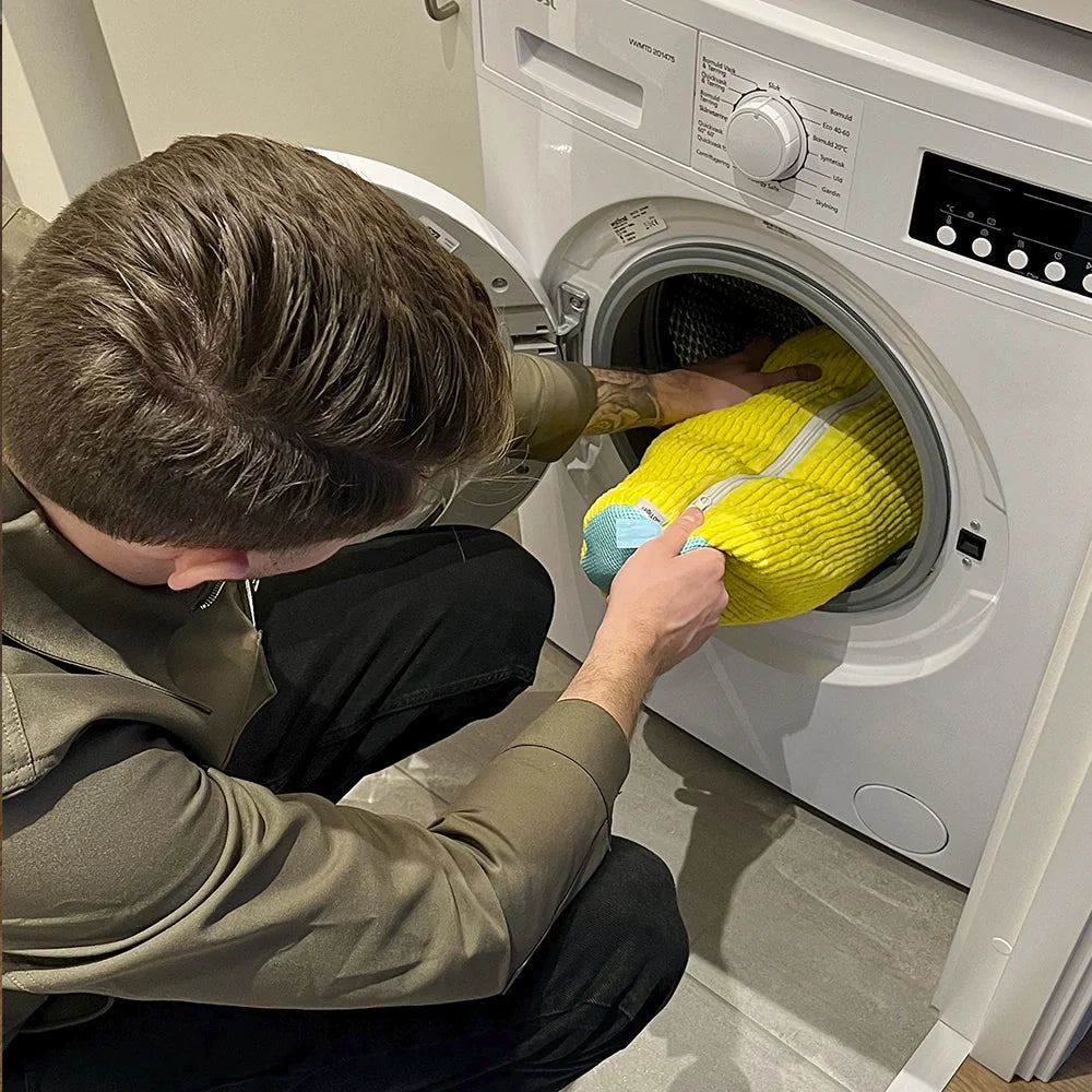 Placer dine CleanBags i vaskemaskinen, og lad den gøre arbejdet. Det åndbare mesh-materiale sikrer effektiv rengøring uden at skade skoene.
