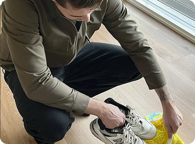 Åbn lynlåsen og læg dine sko i CleanBags. Vores robuste vaskepose beskytter dine sko mod slid og andre skader under vask.